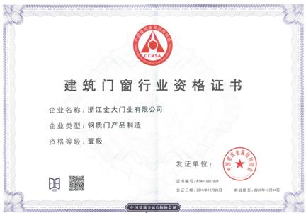 日前,浙江金大門業有限公司順利通過資質審核,獲得建筑鋼質門行業制造企業一級資質、安裝企業一級資質。據悉,金大門業也是國內首批取得建筑門窗企業雙一級資質的企業。